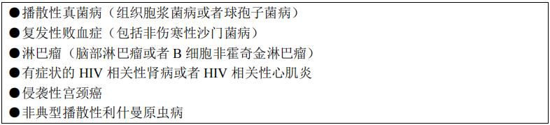 感染HIV后的終末階段。患者CD4+T淋巴細胞計數多<200個/μL。此期主要臨床階段表現為HIV相關癥狀、體征及各種機會性感染和腫瘤。